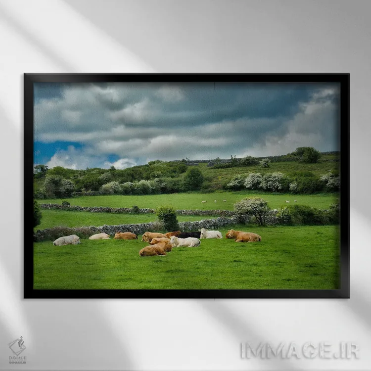 برای دکورهای صمیمی، «مرتع ایرلندی» اثرِ «دنیس فراتس» یک لبخند ریز به چیدمان میدهد؛ برای نشیمنهای خانوادگی انتخابی خوشسلیقه است. هر بار نگاهش میکنید، یک جزئیات تازه به چشم میآید.