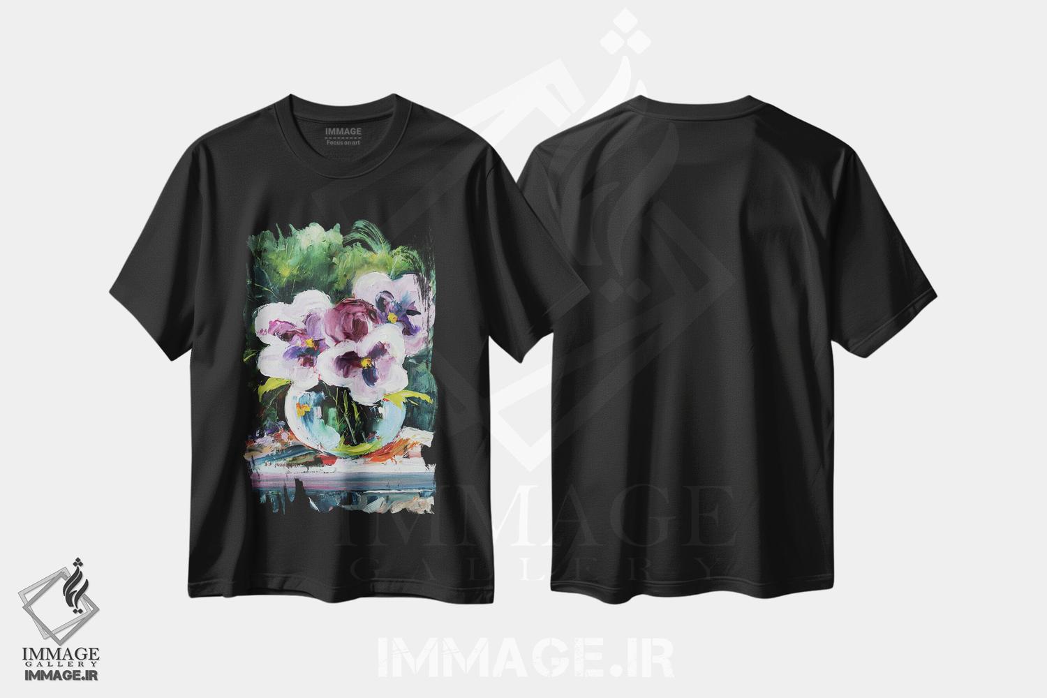 تیشرت طرح دار بنفشه ها در گلدان شیشه ای اثر الکساندرا جاگودا