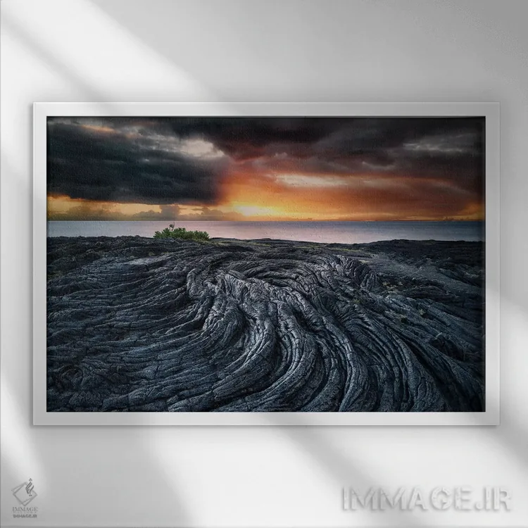این تابلو با عنوان «چرخش گدازه» اثرِ «دنیس فراتس» چیدمان را از حالت پراکنده خارج میکند؛ برای فضاهایی با نور طبیعی پیشنهاد میشود. برای ترکیب با چوب، سنگ یا فلز، انتخابی دقیق است.