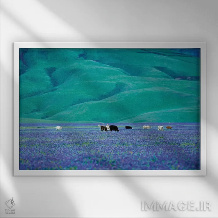 اگر به دکورهای طبیعی علاقه دارید، «گاوها در مزرعه لوپین یک» اثرِ «دنیس فراتس» برای دیوارهای ساده، یک لطافتِ دقیق میسازد، برای هدیه دادن گزینهٔ مناسبیست. با قاب روشن یا چوبی، حس طبیعیتری پیدا میکند.