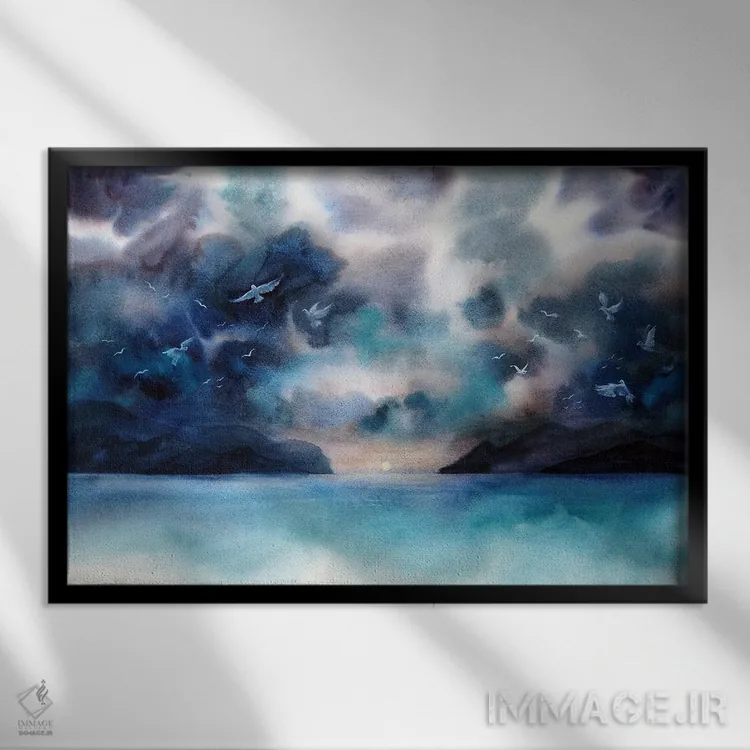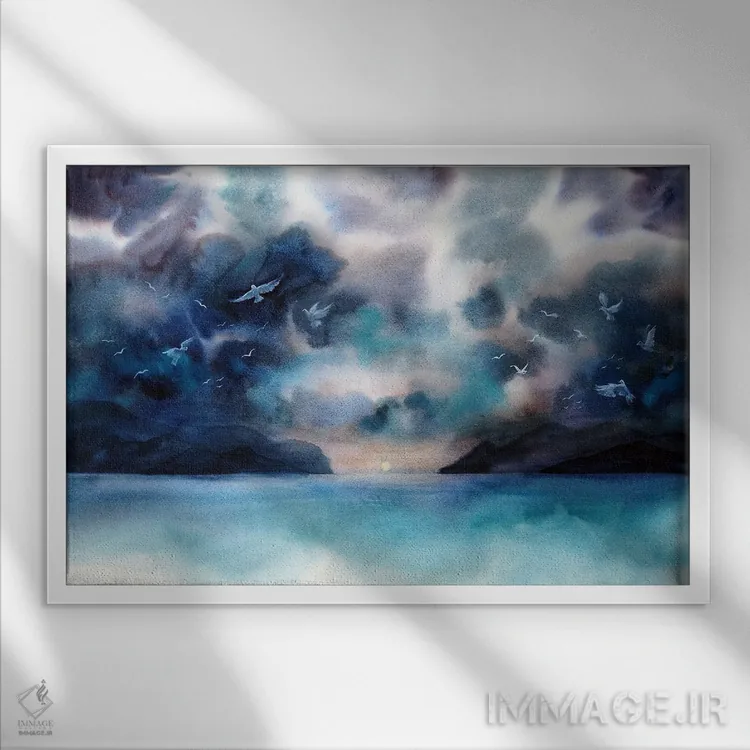 براساس پالت سرد اثر، قاب سفید مات (فریم باریک) پیشنهاد اول است و نقرهای برسخورده (متالیک) مکمل. برای سفارشهای پروژهای با ابعاد و قابهای اختصاصی با ایماژ در تماس باشید.
