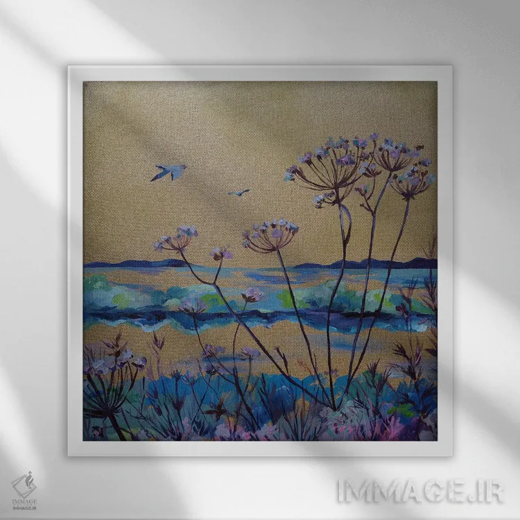 براساس پالت ترکیبی اثر، قاب بلوط روشن (چوبی) پیشنهاد اول است و استخوانی ملایم مکمل. برای سفارشهای پروژهای با ابعاد و قابهای اختصاصی با ایماژ در تماس باشید.