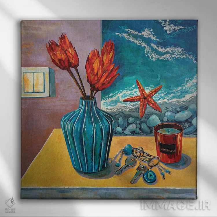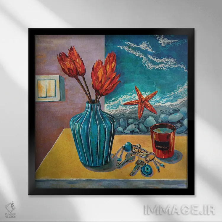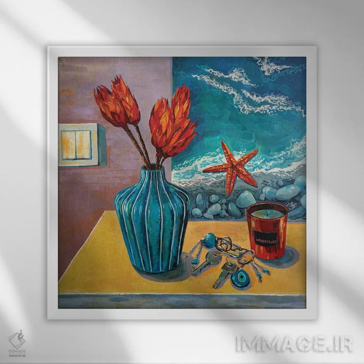 براساس پالت ترکیبی اثر، قاب تیک گرم (چوبی) پیشنهاد اول است و مشکی مات (فریم متوسط) مکمل. برای سفارشهای پروژهای با ابعاد و قابهای اختصاصی با ایماژ در تماس باشید.