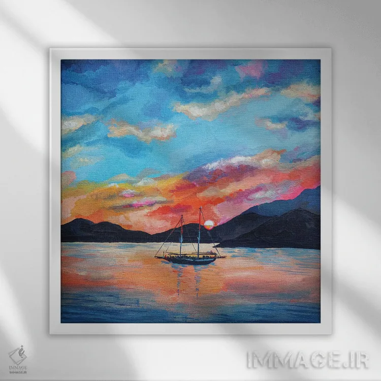 براساس پالت ترکیبی اثر، قاب تیک گرم (چوبی) پیشنهاد اول است و مشکی مات (فریم متوسط) مکمل. برای سفارشهای پروژهای با ابعاد و قابهای اختصاصی با ایماژ در تماس باشید.