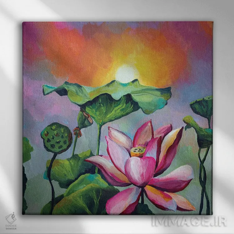تابلو نیلوفر آبی آفتابی اثر دلنارا ال - نمای پرسپکتیو محصول