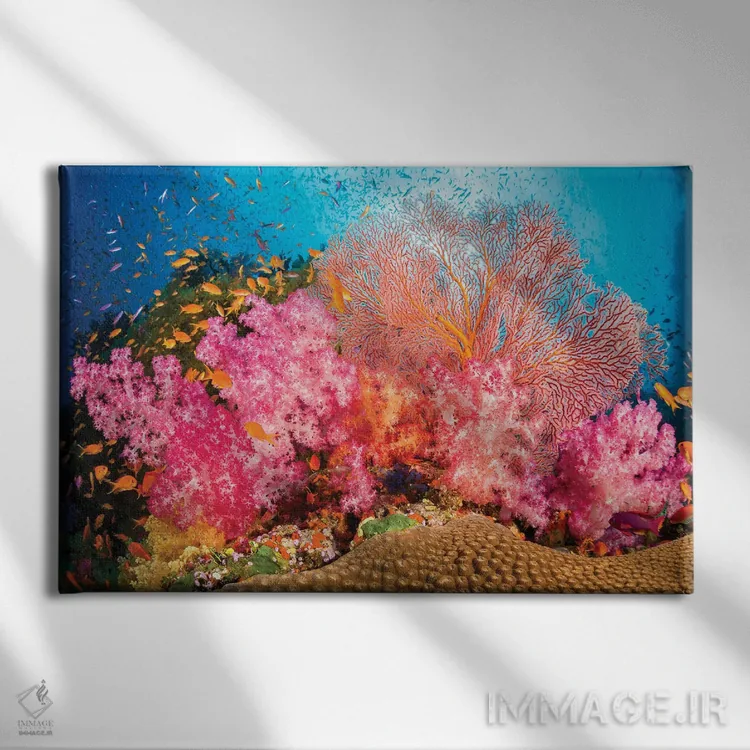 تابلو صخره‌های آلسیوناریا و گورگونی با گله ماهی آنتیاس، غالب بر این صحنه صخره‌ای فیجی اثر دیوید فلیتهام - نمای پرسپکتیو محصول