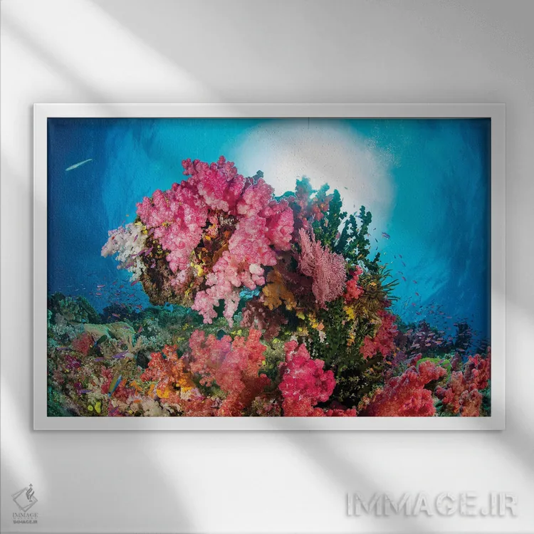 تابلو Fiji,آلسیوناریا و گورگونی همراه با ماهی آنتیاس، فیجی اثر دیوید فلیتهام - نمای قاب‌دار سفید