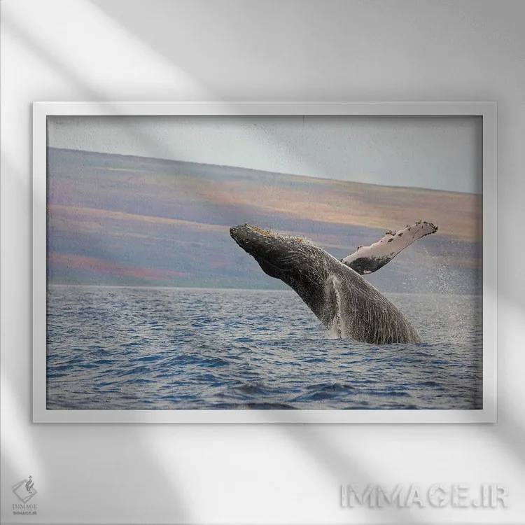 تابلو وال کوهان‌دار در حال بیرون پریدن نزدیک هاوایی اثر دیوید فلیتهام - نمای قاب‌دار سفید