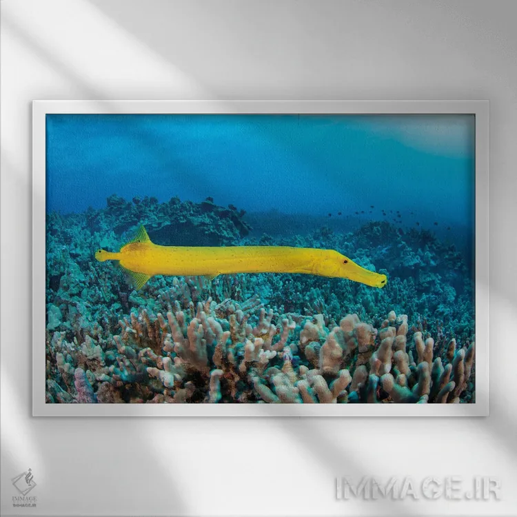 «Aulostomus Chinensis، Are Parasitic Copepods، Hawaii، نقاط روی این ماهی ترومپت زرد (Aulostomus chinensis) پاروپایان انگلی هستند، هاوایی» اثرِ «دیوید فلیتهام» انتخابیست برای زمانی که یک حس «تمامشده و پرداختشده» ایجاد میکند؛ برای فضاهایی که میخواهید مرکز توجه داشته باشند انتخابی عالی است. به فضا حس «گالری خانگی» میدهد، بدون اینکه اغراق کند.