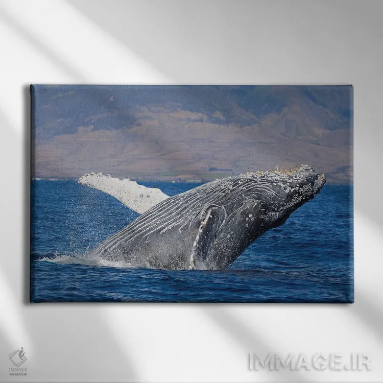 تابلو پریدن نهنگ گوژپشت در نزدیکی ساحل هاوایی ۲ اثر دیوید فلیتهام - نمای روبه‌رو روی دیوار