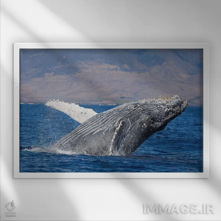 تابلو پریدن نهنگ گوژپشت در نزدیکی ساحل هاوایی ۲ اثر دیوید فلیتهام - نمای قاب‌دار سفید