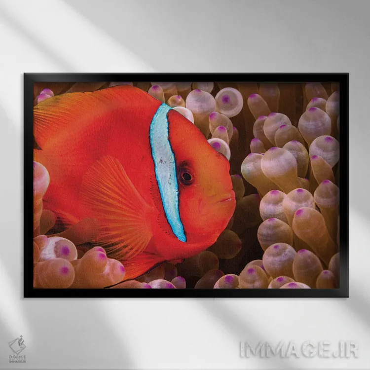گاهی یک اثر کافیست تا فضا جمعوجور شود؛ «Amphiprion Frenatus، Philippines، یک ماهی دلقک گوجهای ماده (Amphiprion frenatus)، فیلیپین» اثرِ «دیوید فلیتهام» جلوهٔ رنگها را طبیعیتر و متعادلتر نشان میدهد؛ برای اتاق خوابهای آرام و روشن پیشنهاد میشود. برای پروژههای طراحی داخلی هم گزینهای قابل اتکاست.