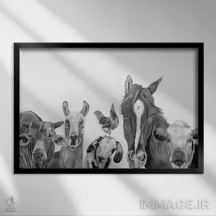 اگر به آثار حیوانات علاقه دارید، «تیم مزرعه» اثرِ «دایان فیفر» یک لبخند ریز به چیدمان میدهد، برای دیوار کنار میز کار گزینهٔ مناسبیست. هم فضا را گرم میکند، هم شلوغش نمیکند.