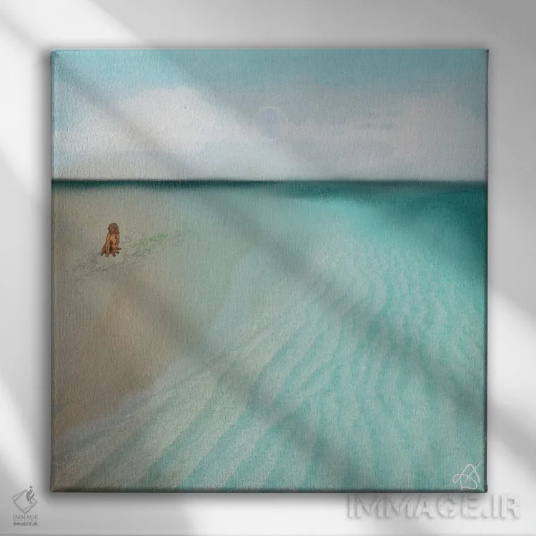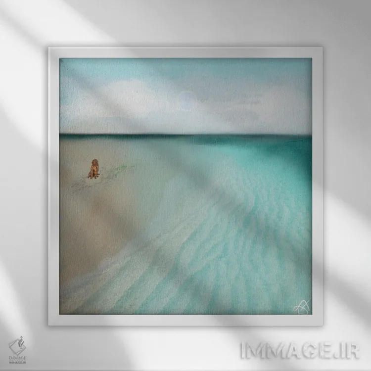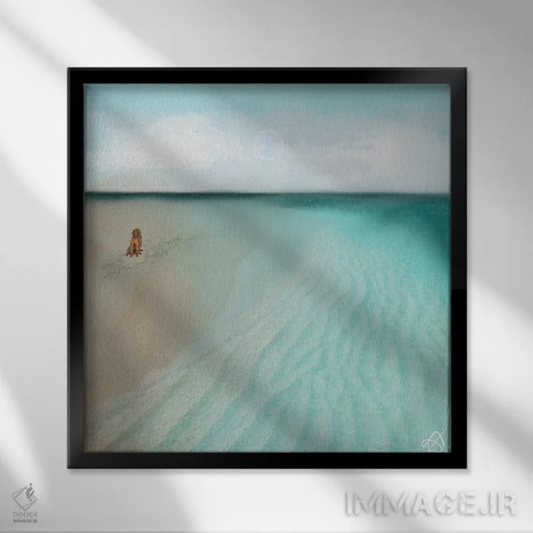 «سگ در ساحل» اثرِ «دارلا فرارا» در فضای دکور ساحلی، کنار پارچههای روشن و اکسسوریهای طبیعی (حصیر/چوب) عالی هماهنگ میشود.