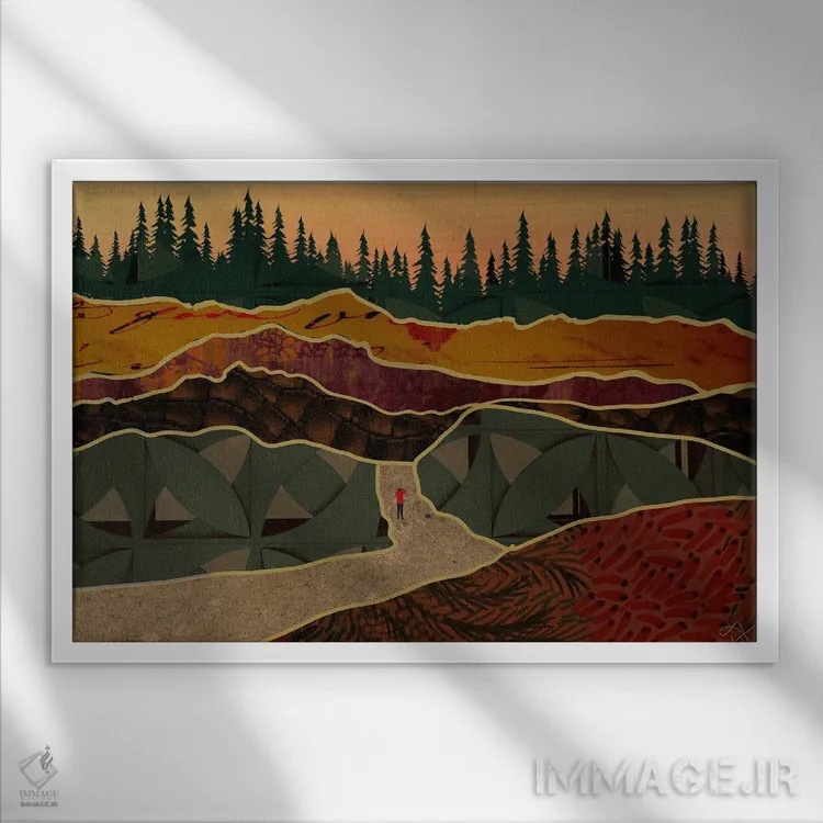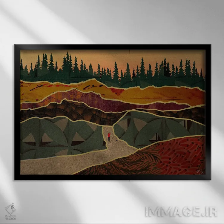 براساس پالت گرم اثر، قاب تیک گرم (چوبی) پیشنهاد اول است و مشکی مات (فریم متوسط) مکمل. برای سفارشهای پروژهای با ابعاد و قابهای اختصاصی با ایماژ در تماس باشید.