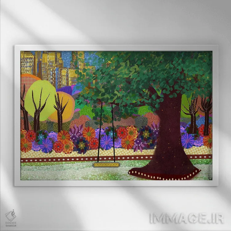 تابلو تاب درختی اثر دارلا فرارا - نمای قاب‌دار مشکی