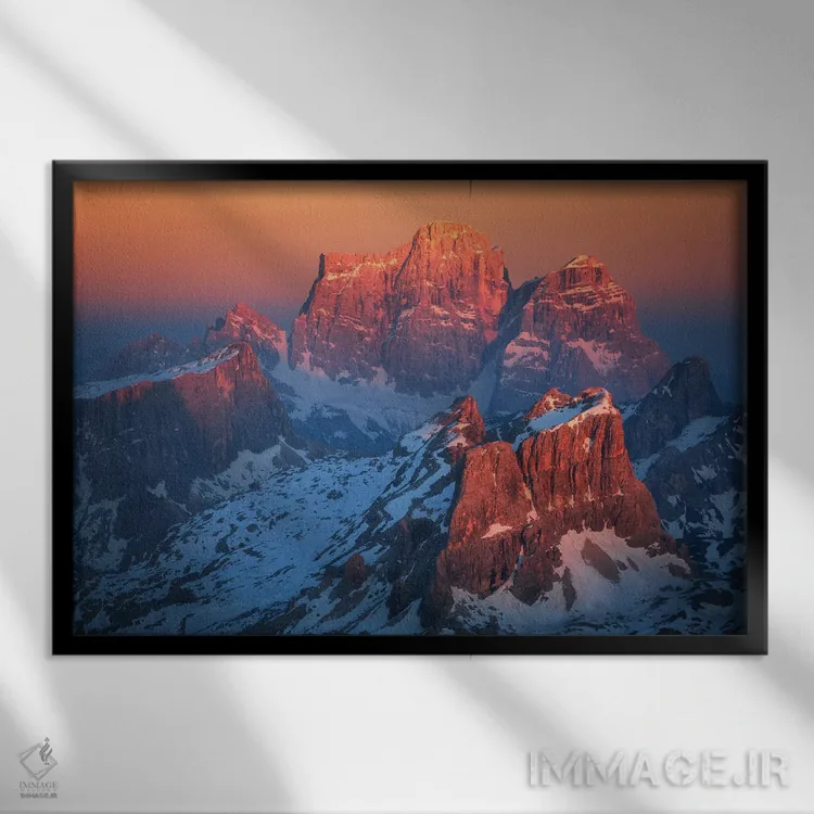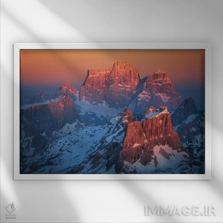 در این اثر، «غروب سرخ در مونته پلمو (دولومیت)» اثرِ «دنیل گاستاگر» تضادهای رنگی را خوشقوارهتر میکند؛ برای فضاهایی که میخواهید مرکز توجه داشته باشند پیشنهاد میشود. در کنار قاب مناسب، جلوهٔ کار چند برابر میشود.