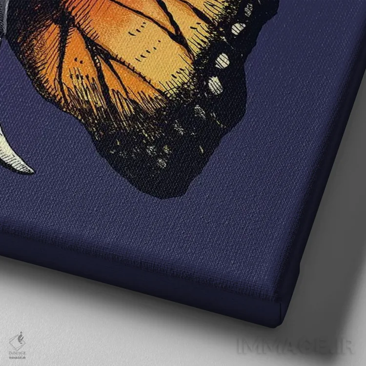 تابلو فیل‌پرنده (ترکیب فیل و پروانه/پرنده) اثر دیجیتال کاربین (نام هنرمند یا استودیو) - نمای نزدیک بافت بوم