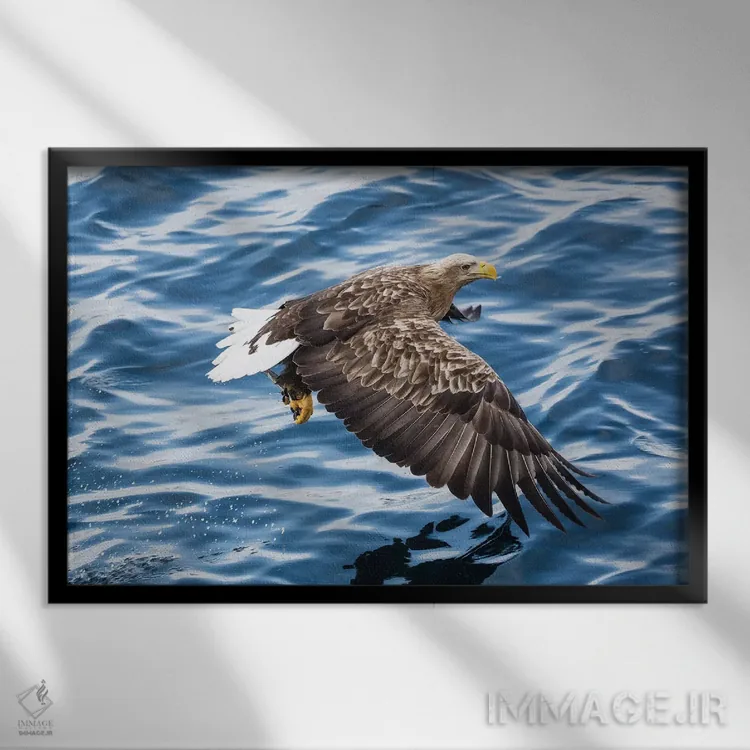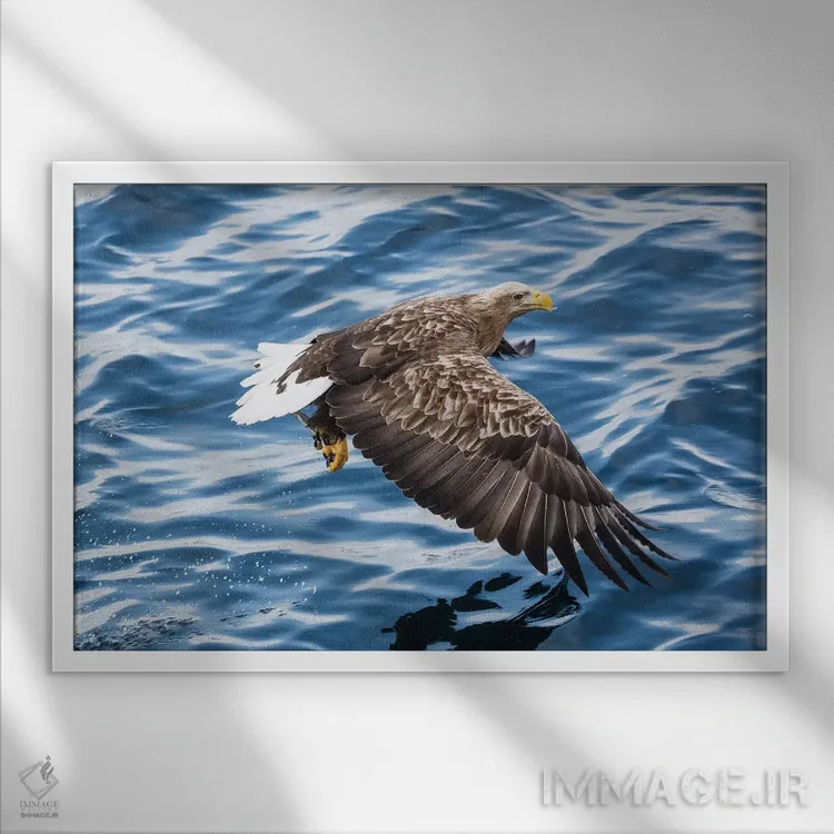 تابلو دکوراتیو Hokkaido, Japan,عقاب دم سفید در حال ماهیگیری در آب های شبه ج… اثر دارل گالین