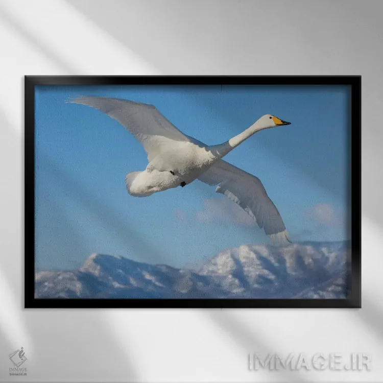 اگر به آثار حیوانات علاقه دارید، «Flying On Frozen Lake Kussharo I، Hokkaido، قوهای آوازخوان، در حال پرواز روی دریاچه یخزده کوشارو ۱، هوکایدو» اثرِ «دارل گالین» فضا را صمیمیتر و دعوتکنندهتر نشان میدهد، برای نشیمنهای خانوادگی گزینهٔ مناسبیست. به دیوار، قصه میدهد—اما قصهای آرام و شیک.