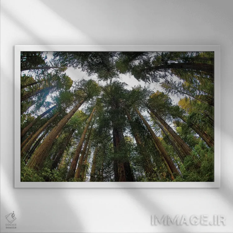 تابلو Del Norte Coast Redwoods State Park, California,نگاه به جنگل درختان ردوود در پارک ایالتی دل نورت کالیفرنیا اثر دارل گالین - نمای قاب‌دار سفید