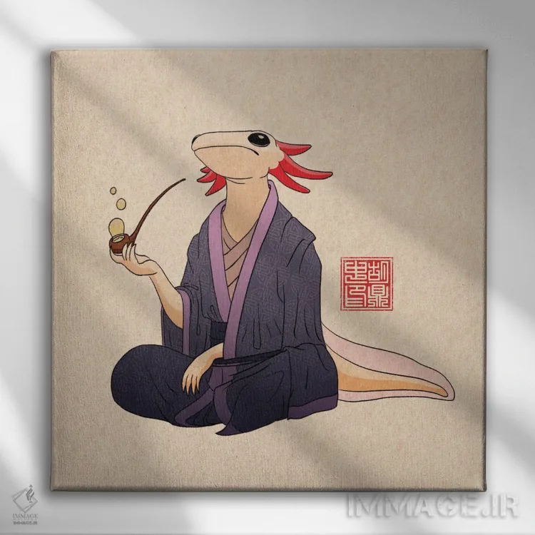 تابلو One Must Axolotl Questions,برای فیلسوف شدن باید سوال‌های اکسلوتل پرسید (بازی واژه: اکسلوتل = گونه‌ای دوزیست) اثر باورگ‌ژونگ هو - نمای پرسپکتیو محصول