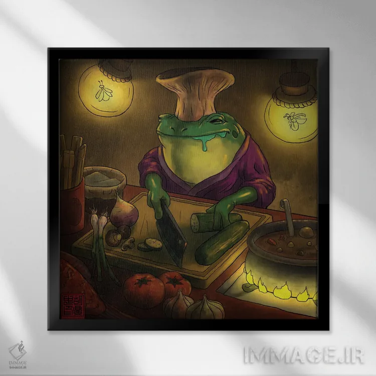 وقتی چیدمان را با دقت میچینید، «قورباغه سرآشپز» اثرِ «باورگژونگ هو» اتاق را جمعوجورتر و مرتبتر نشان میدهد؛ برای فضاهایی که میخواهید آرام اما جدی دیده شوند پیشنهاد میشود. هم از دور چشمگیر است و هم از نزدیک پرداخت دارد.