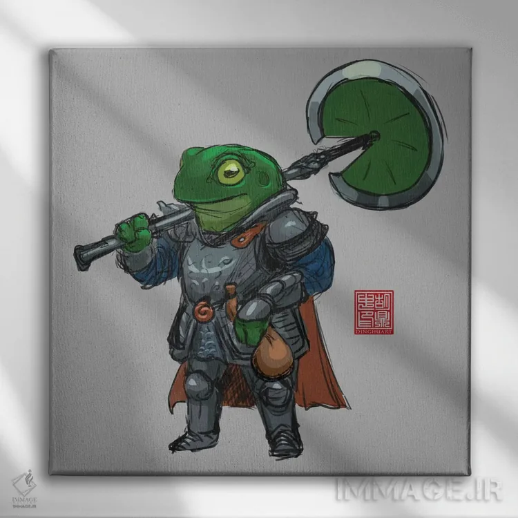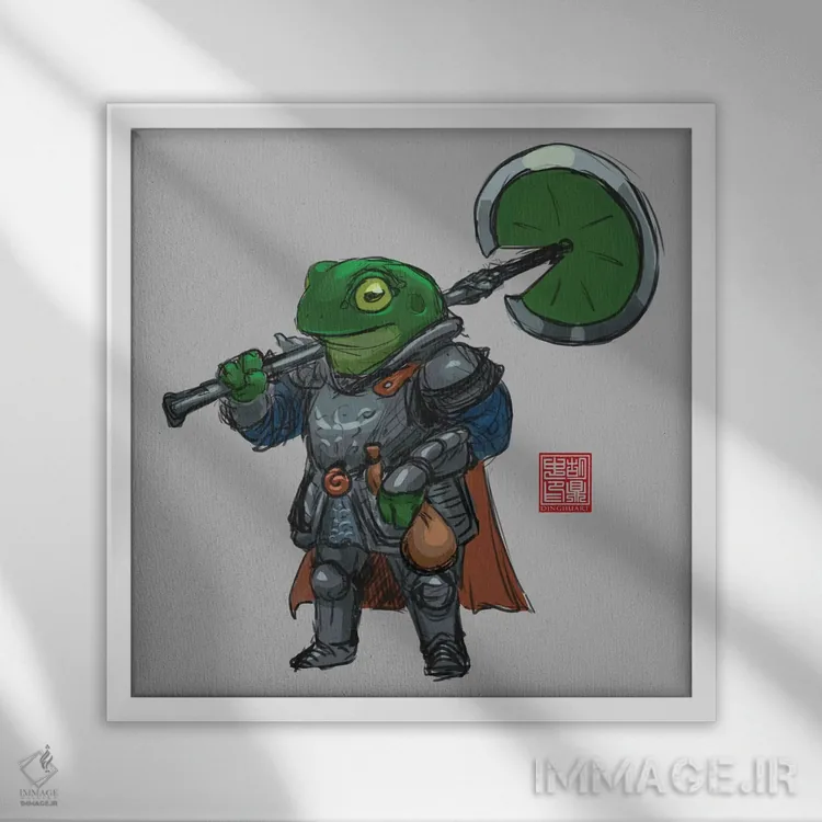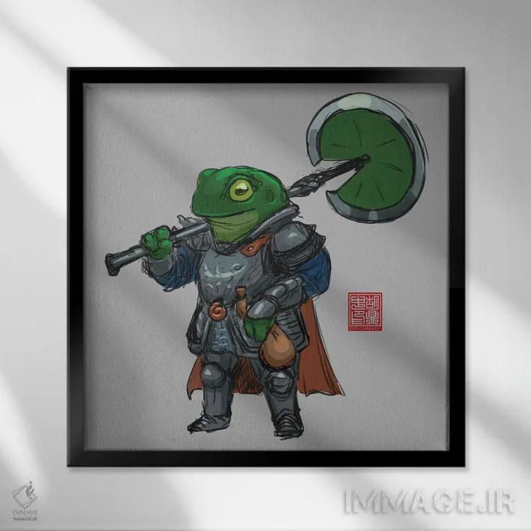 اگر میخواهید دیوار کمی سرزندگیِ محترمانه داشته باشد، «قورباغه جنگجو» اثرِ «باورگژونگ هو» بدون کودکانه شدن، بازیگوش و خوشپرداخت میماند، برای کافههای کوچک و صمیمی گزینهٔ مناسبیست. هر بار نگاهش میکنید، یک جزئیات تازه به چشم میآید.