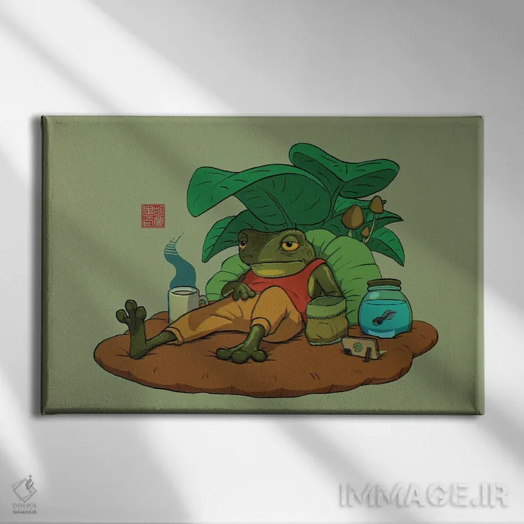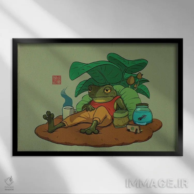 برای دیوارهای ساده، «قورباغه خسته و پسرش» اثرِ «باورگژونگ هو» در کنار رنگهای خنثی، تضاد دلچسبی میسازد؛ برای اتاق بازی یا گوشهٔ مطالعه انتخابی خوشسلیقه است. هر بار نگاهش میکنید، یک جزئیات تازه به چشم میآید.