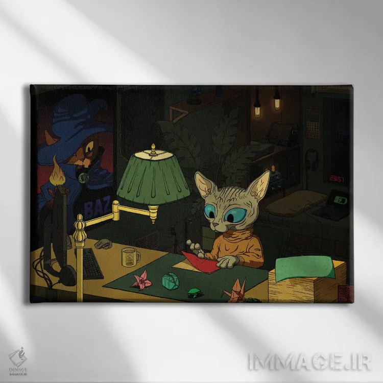 برای دیوارهای ساده، «لذت اریگامی» اثرِ «باورگژونگ هو» مثل یک امضای بامزه اما متین عمل میکند؛ برای فضاهای روستیک یا بوهو انتخابی خوشسلیقه است. حسش صمیمی است، اما کیفیتش جدی و خوشپرداخت.