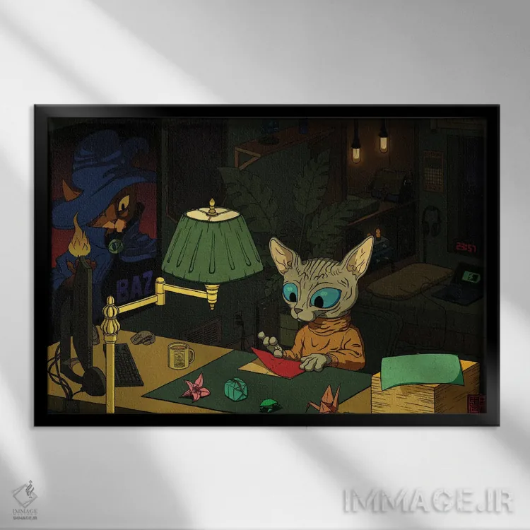 در یک جمله: اگر میپسندید که اثر در فضا «باز و روشن» دیده شود، یک اکسنت رنگی کوچک کافی است و نتیجه را مرتبتر و تمیزتر میکند. برای راهنمایی دربارهی قاب، اندازه یا سفارشهای ویژه، تیم ایماژ کنار شماست تا نتیجه حرفهایتر دیده شود.