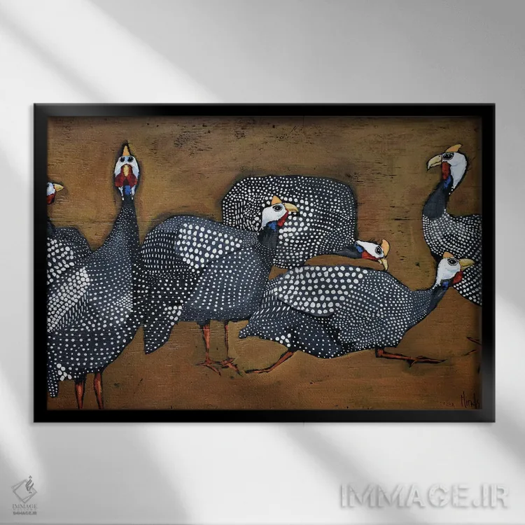تابلو گیجی مرغ‌های گینه‌ای اثر دیویدای هینْدز - نمای قاب‌دار مشکی