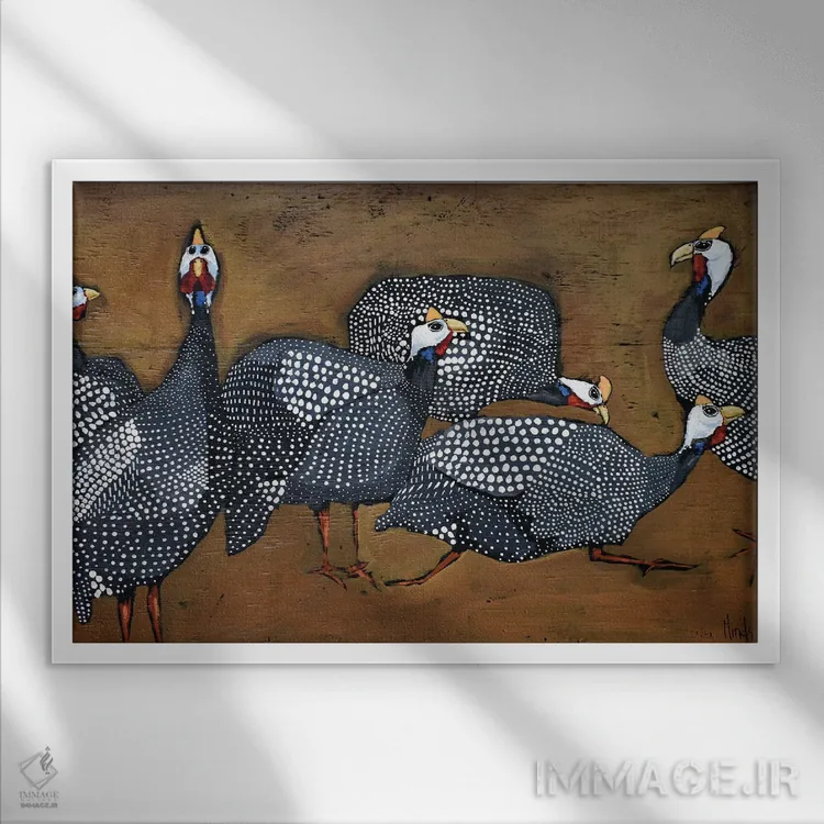 تابلو گیجی مرغ‌های گینه‌ای اثر دیویدای هینْدز - نمای قاب‌دار سفید