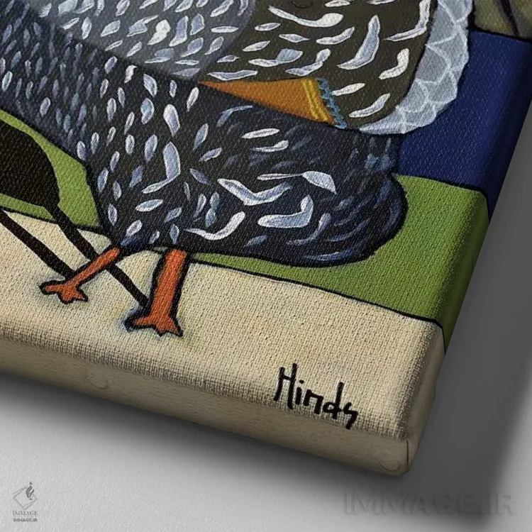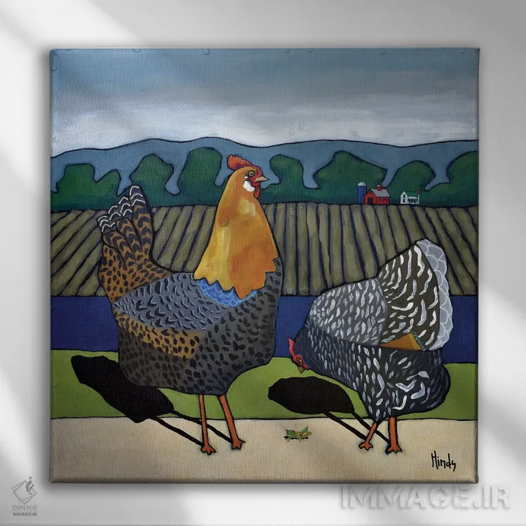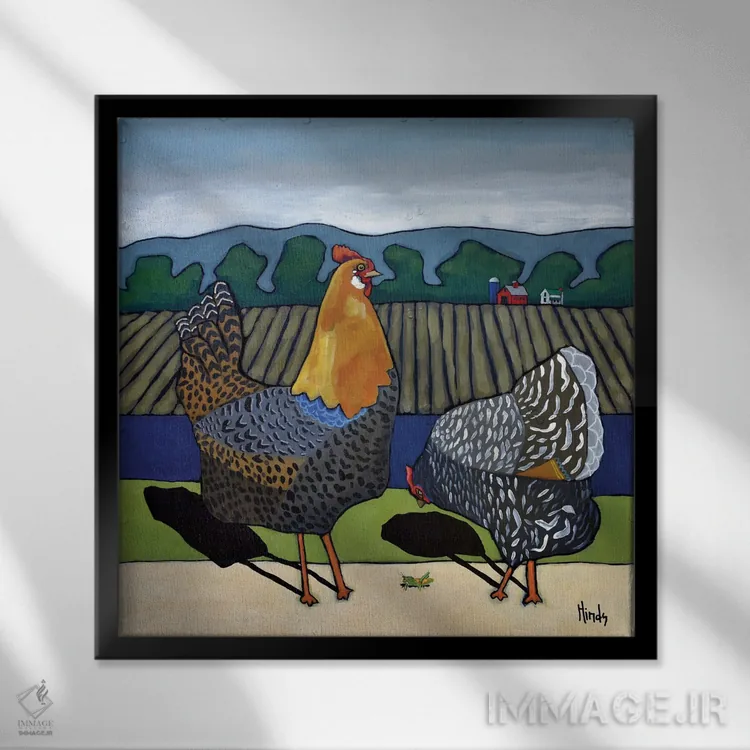 اگر به آثار حیوانات علاقه دارید، «خروس کاگبرن و خانم یولا» اثرِ «دیویدای هینْدز» به دیوار، انرژیِ نرم و زنده میدهد، برای اتاق کودک (بدون لحن کودکانه) گزینهٔ مناسبیست. با قاب چوبی یا مشکی، حس مرتبتری پیدا میکند.