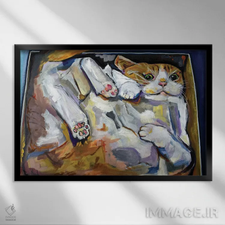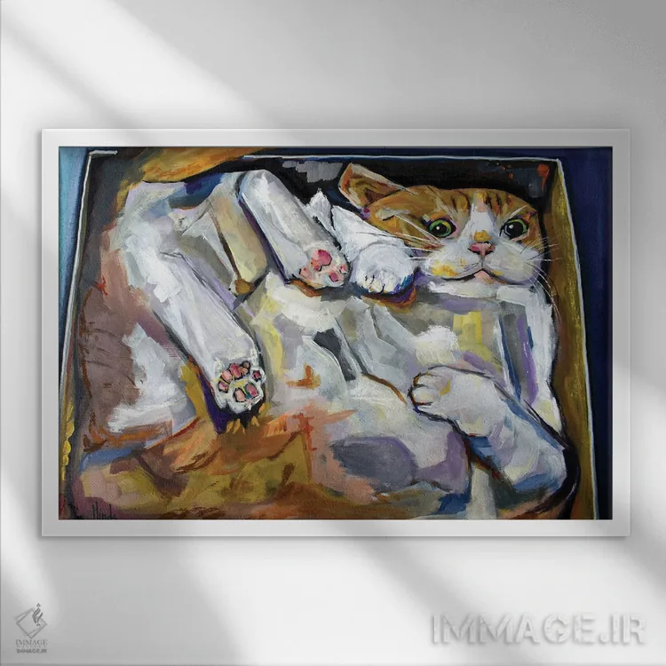 تابلو گربه در جعبه اثر دیویدای هینْدز - نمای قاب‌دار سفید