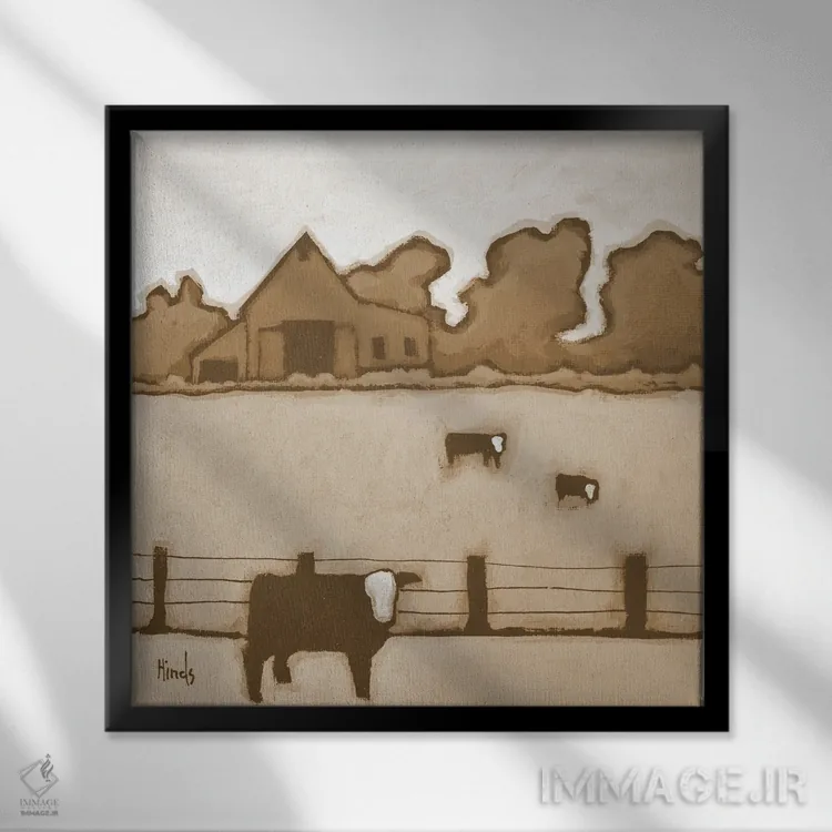 براساس پالت گرم اثر، قاب بلوط روشن (چوبی) پیشنهاد اول است و استخوانی ملایم مکمل. برای سفارشهای پروژهای با ابعاد و قابهای اختصاصی با ایماژ در تماس باشید.