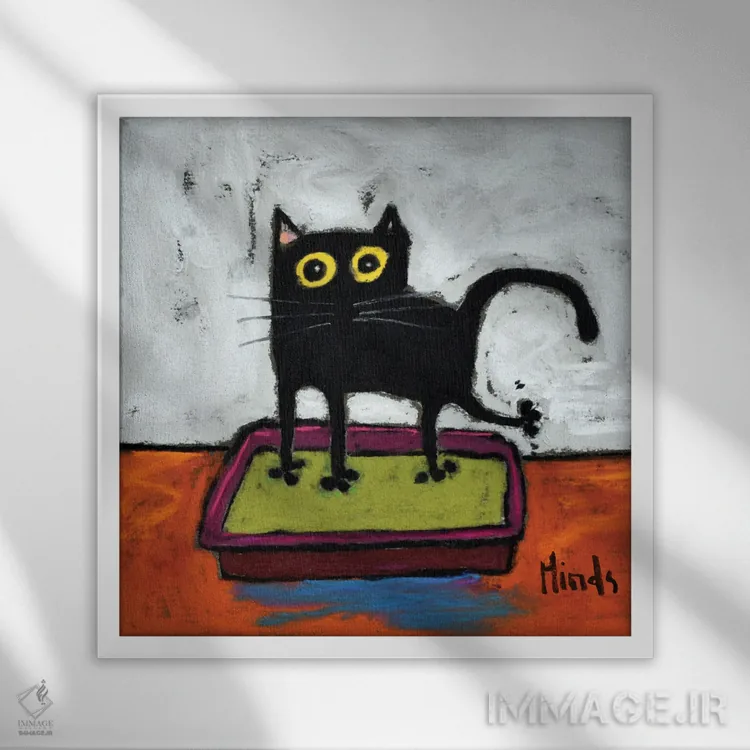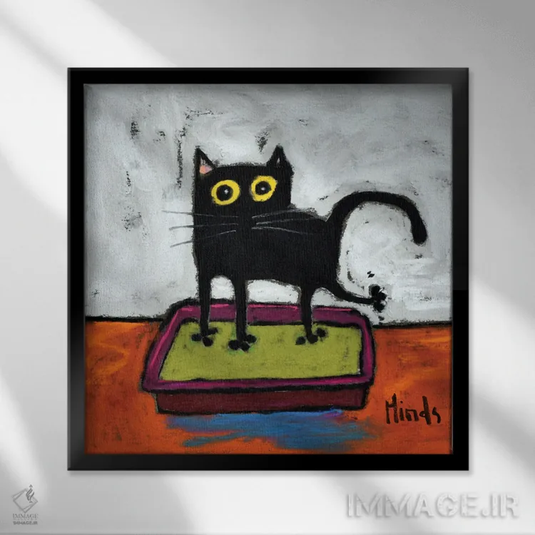 تابلو گربه سیاه در جعبه خاک اثر دیویدای هینْدز - نمای قاب‌دار سفید