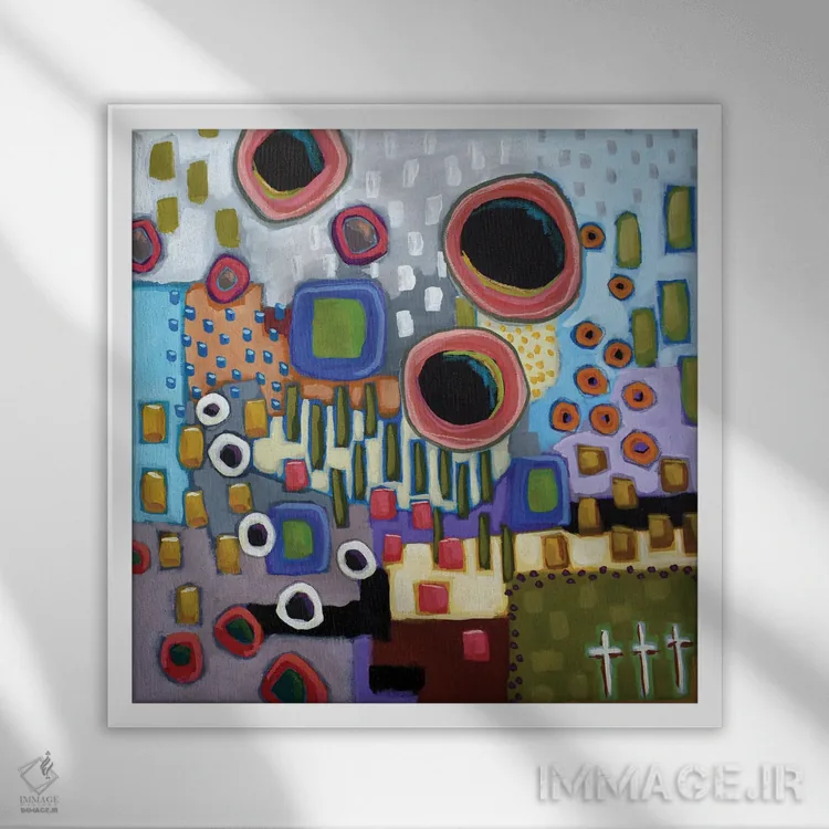 براساس پالت ترکیبی اثر، قاب تیک گرم (چوبی) پیشنهاد اول است و مشکی مات (فریم متوسط) مکمل. برای سفارشهای پروژهای با ابعاد و قابهای اختصاصی با ایماژ در تماس باشید.