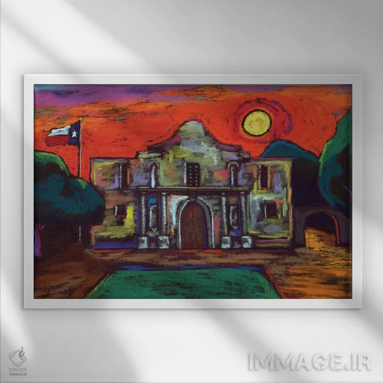 تابلو یادآوری آلامو (دژ تاریخی آمریکا) اثر دیویدای هینْدز - نمای قاب‌دار سفید