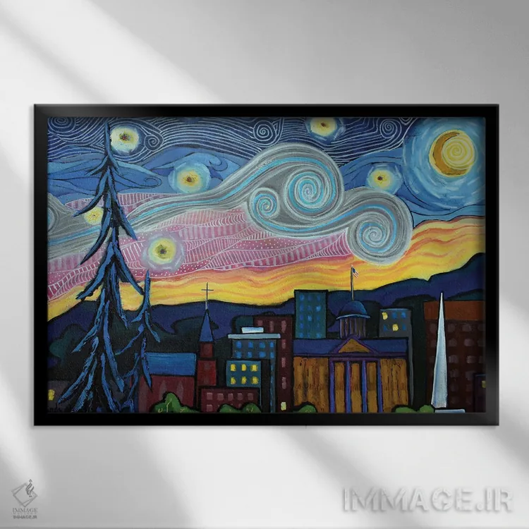 تابلو شب پرستاره بالای اسپرینگفیلد، ایلی‌نوی اثر دیویدای هینْدز - نمای پرسپکتیو محصول