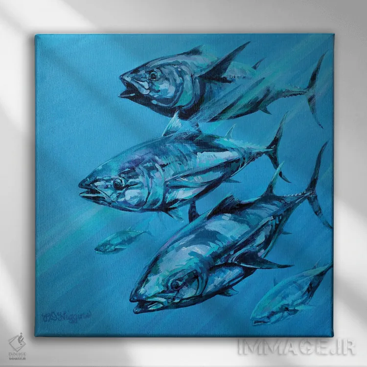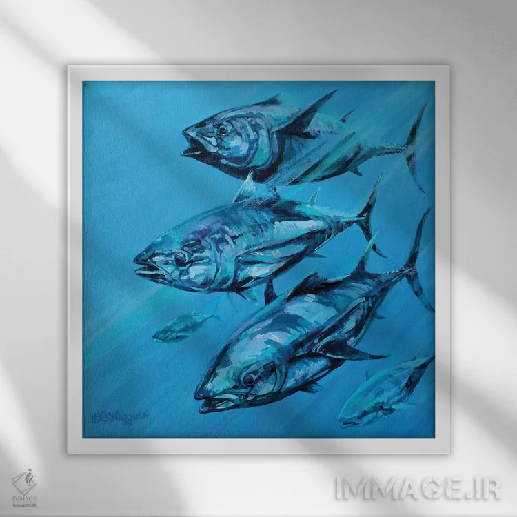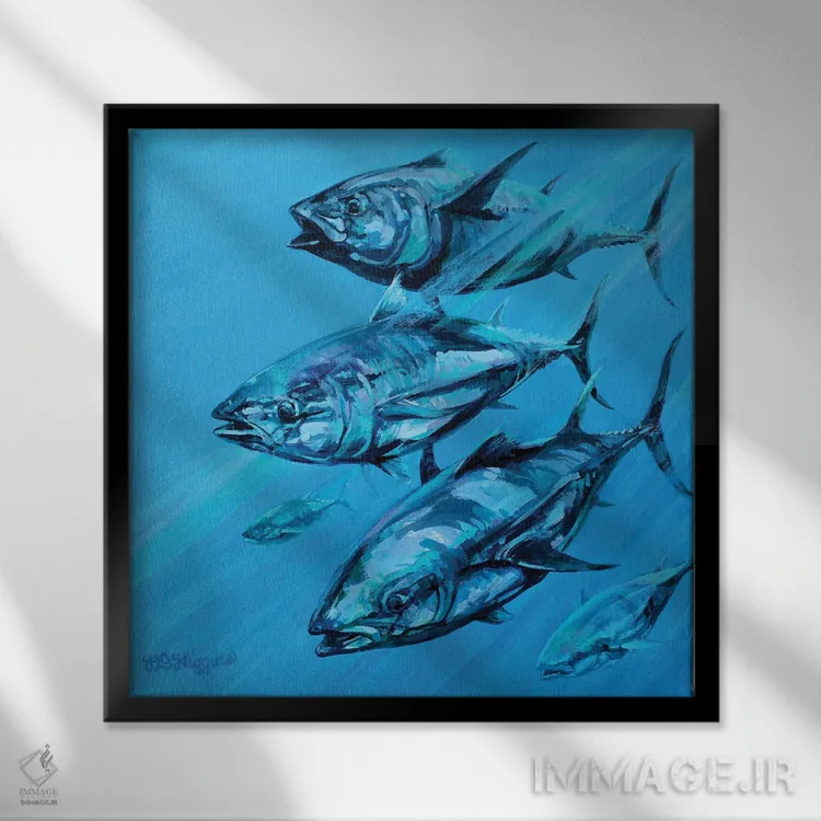 تابلو دکوراتیو گروه ماهی تن آبی اثر دریک هیگینز