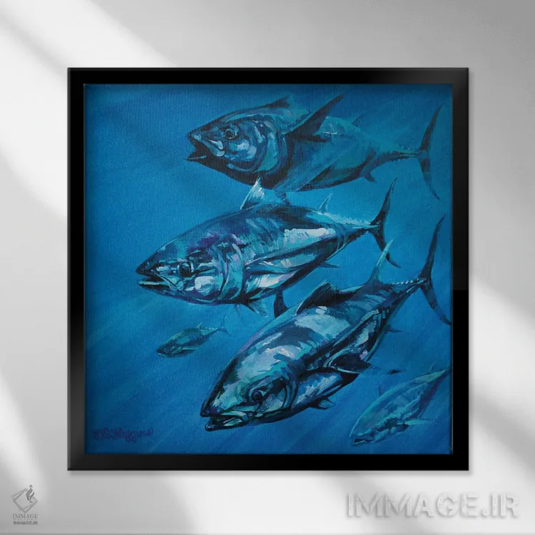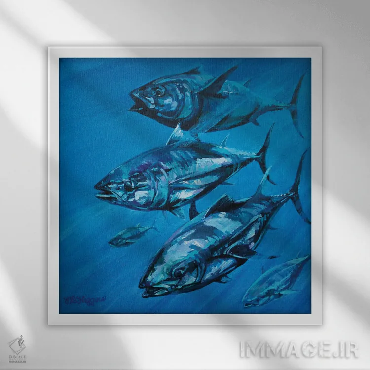 اگر میخواهید دیوار کمی سرزندگیِ محترمانه داشته باشد، «آبی بر آبی» اثرِ «دریک هیگینز» مثل یک امضای بامزه اما متین عمل میکند، برای اتاق کودک (بدون لحن کودکانه) گزینهٔ مناسبیست. حسش صمیمی است، اما کیفیتش جدی و خوشپرداخت.
