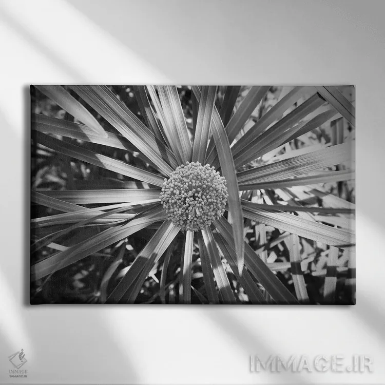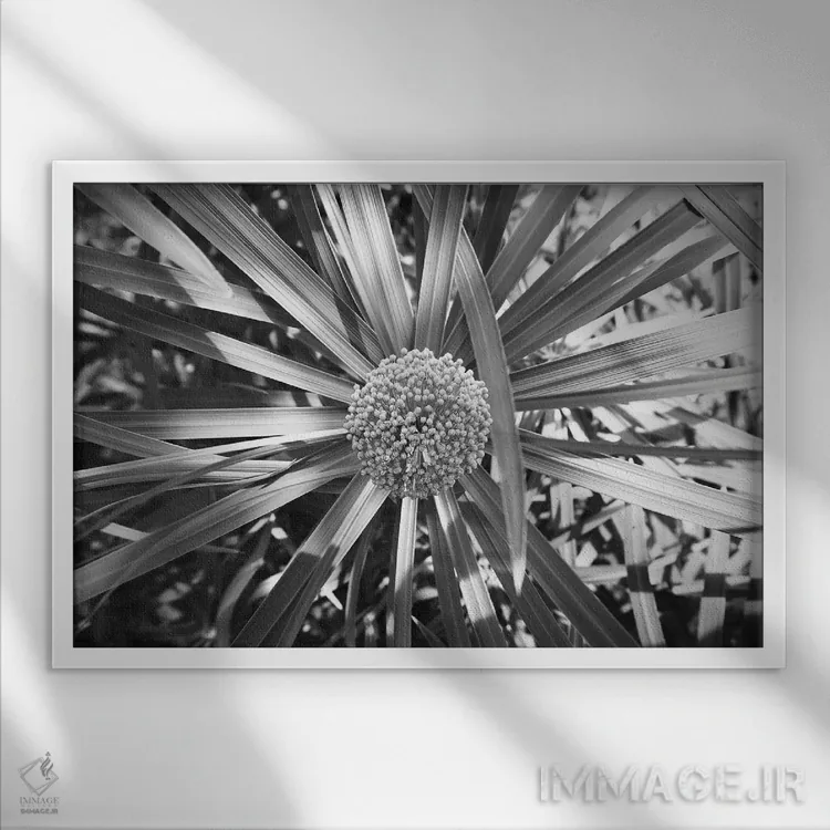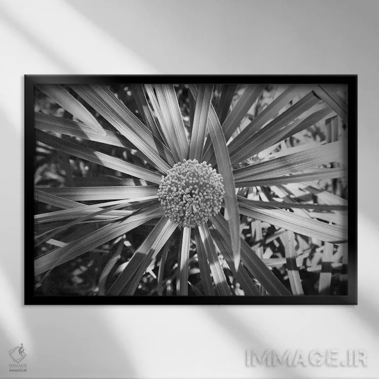 تابلو دکوراتیو عکس سیاه و سفید سرخس با خوشه ای از گل ها اثر پیج ترنر