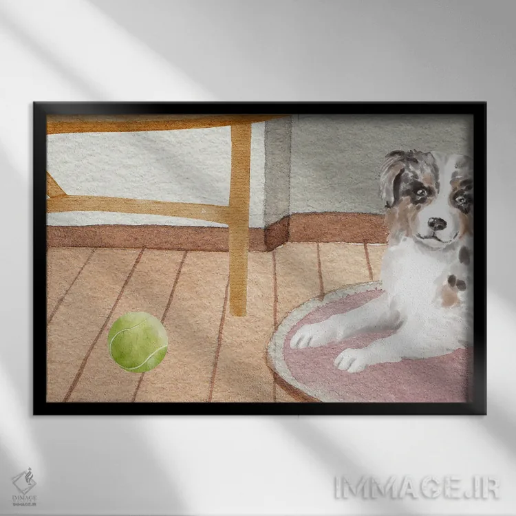 تابلو دکوراتیو سگ و توپ تنیس اثر پیج ترنر