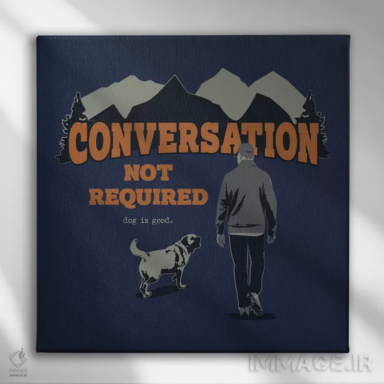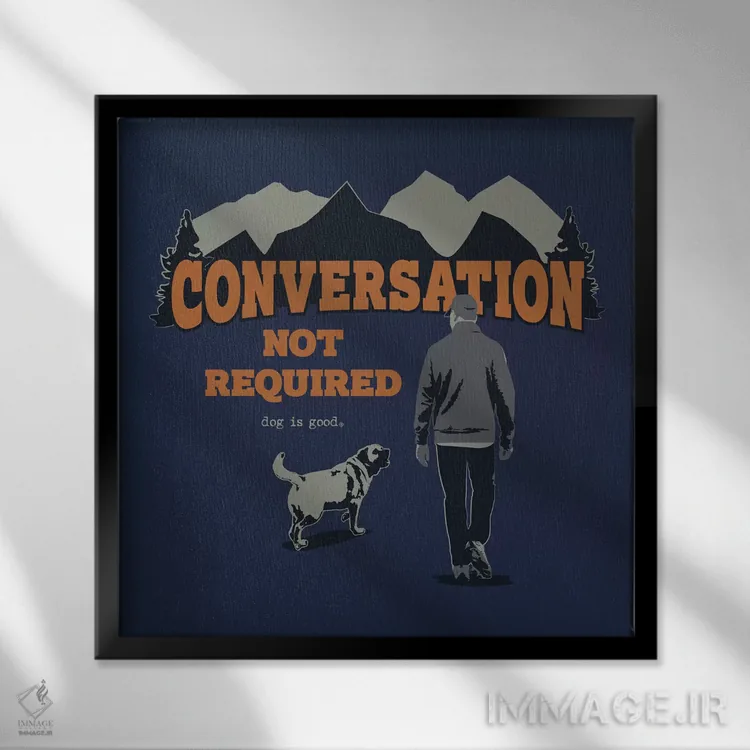اگر به آثار حیوانات علاقه دارید، «مکالمه لازم نیست (کوهنوردی)» اثرِ «داگ ایز گود اند کت ایز گود (برند طراحی)» به فضا، گرمیِ ملایم اضافه میکند، برای کافههای کوچک و صمیمی گزینهٔ مناسبیست. حسش صمیمی است، اما کیفیتش جدی و خوشپرداخت.