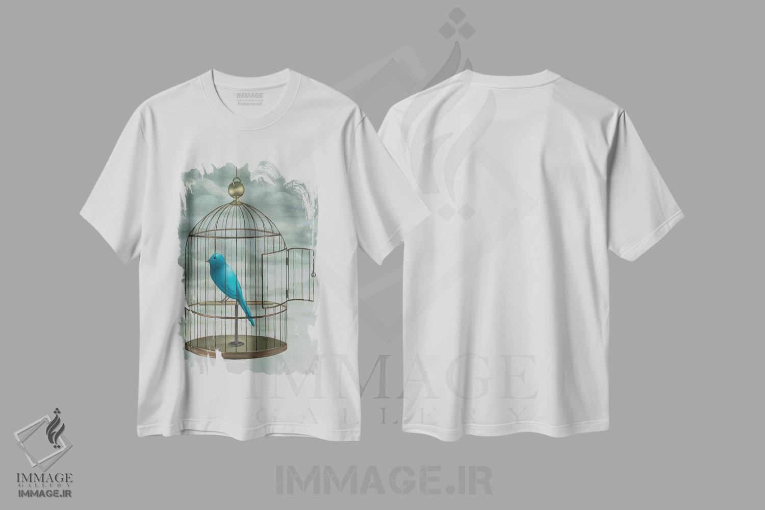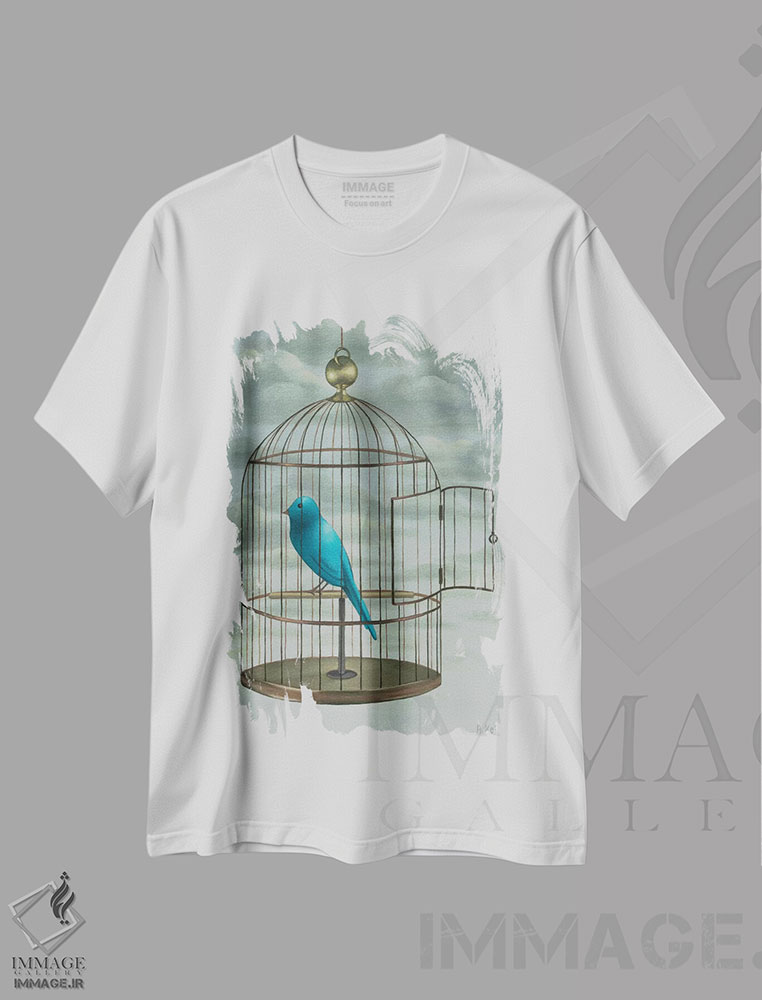 تیشرت طرح دار پرنده آبی اثر آنتوانت کلی