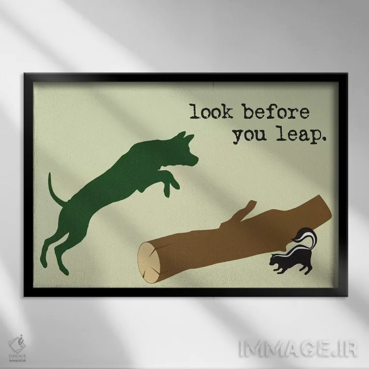 «قبل از نگاه کن» اثرِ «داگ ایز گود اند کت ایز گود (برند طراحی)» یک قاب مدرن و خوشفرم است؛ موضوعِ این اثر در اجرای هنری خوانا و سئوپذیرِ دیواری میشود.