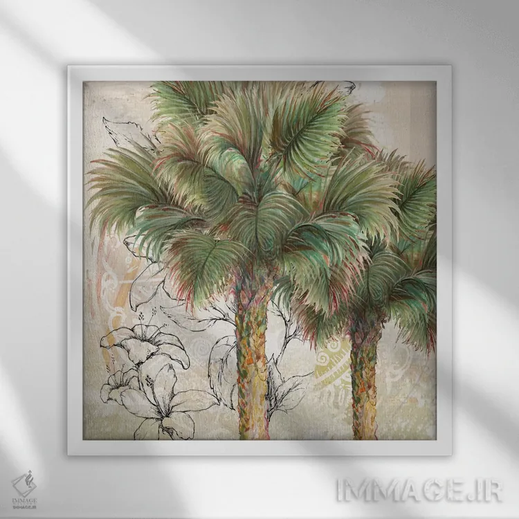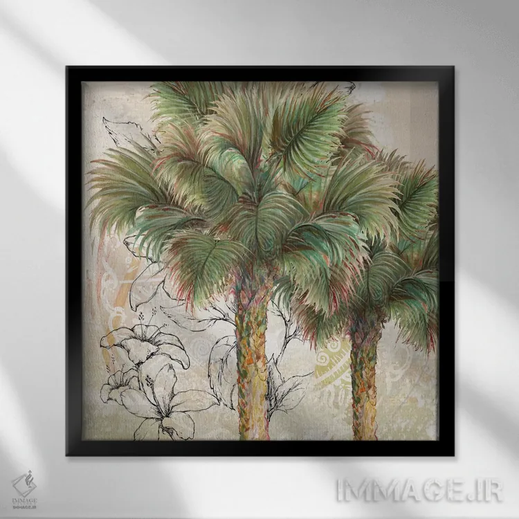 «نخلها دور I» اثرِ «دیانآرت (نام هنری)» میتواند حس طراوت را بدون شلوغی وارد اتاق کند؛ برای فضای غذاخوری پیشنهاد میشود. همیشه بهروز میماند و با فصلها خوب کنار میآید.