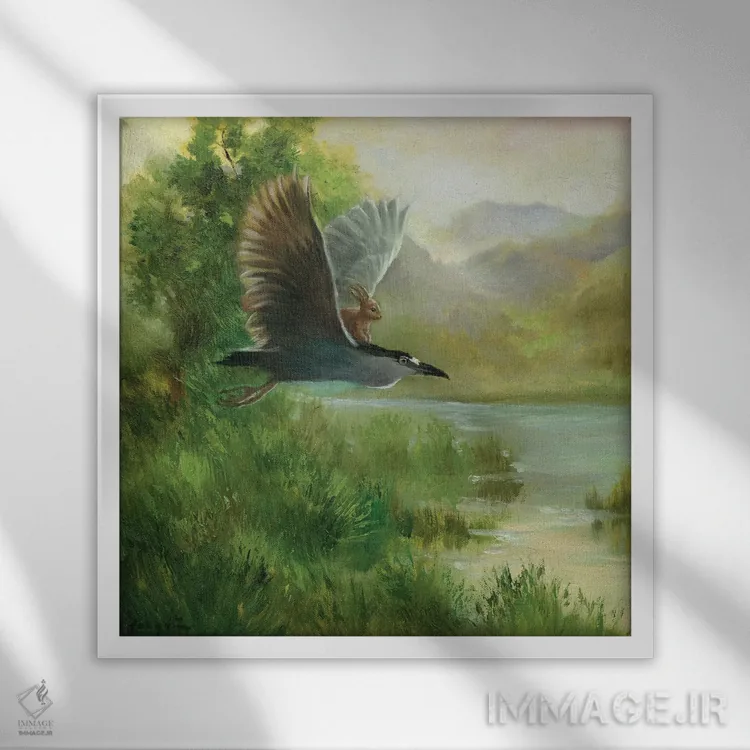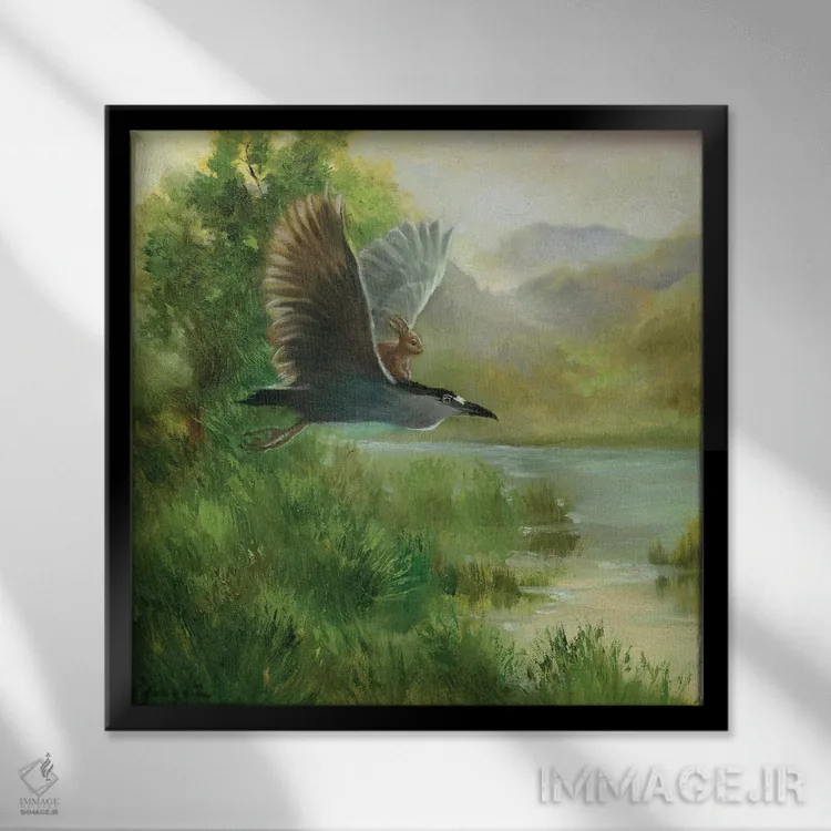 براساس پالت ترکیبی اثر، قاب بلوط روشن (چوبی) پیشنهاد اول است و استخوانی ملایم مکمل. برای سفارشهای پروژهای با ابعاد و قابهای اختصاصی با ایماژ در تماس باشید.