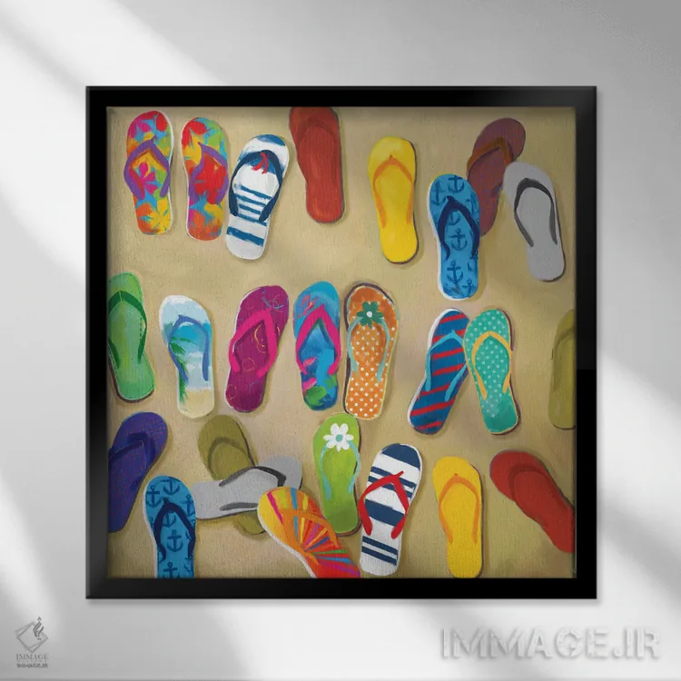 این تابلو با عنوان «دمپایی لاانگشتی II» اثرِ «دراکو فونتین»، کنار آینه و رختکن یا اتاق لباس عالی مینشیند.